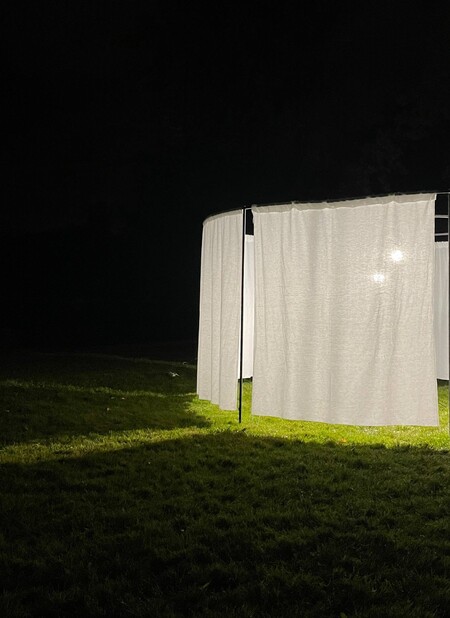 Инсталляция из лёгкой полупрозрачной ткани, напоминающей театральный занавес, это не только визуальный образ, но и символ внутреннего мира человека, его воспоминаний, мечтаний и фантазий.