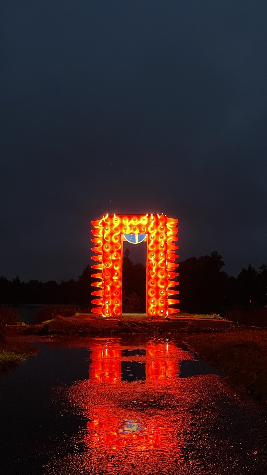 «Я в домике» — светящийся арт-объект, вдохновлённый правилом из «Догонялок». Когда игрок складывает ладони над головой и говорит: «Я в домике!», он временно выходит из игры. Этот жест становится метафорой защиты — в игре и в жизни, когда нам нужно укрыться от трудностей. Объект визуализирует этот момент, предлагая зрителям физически ощутить состояние безопасного «домика».