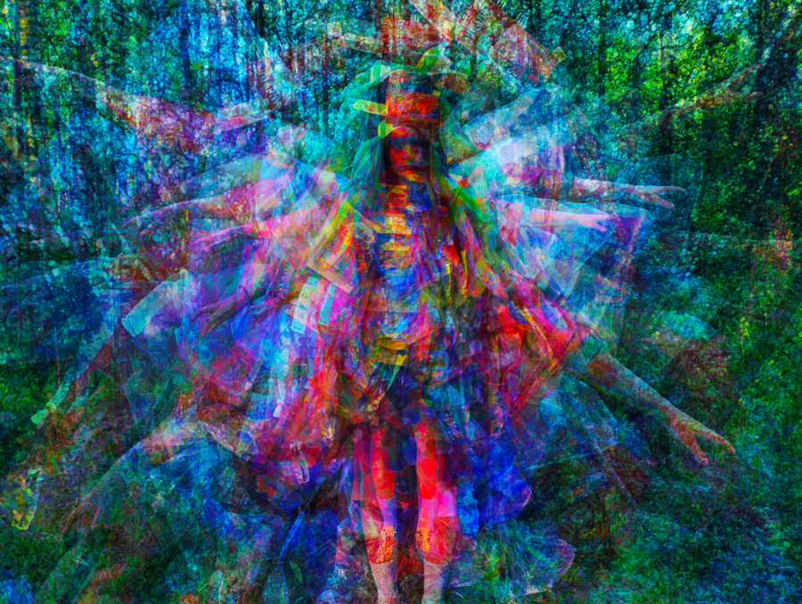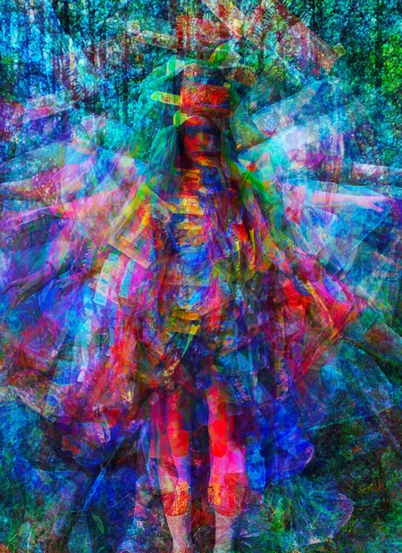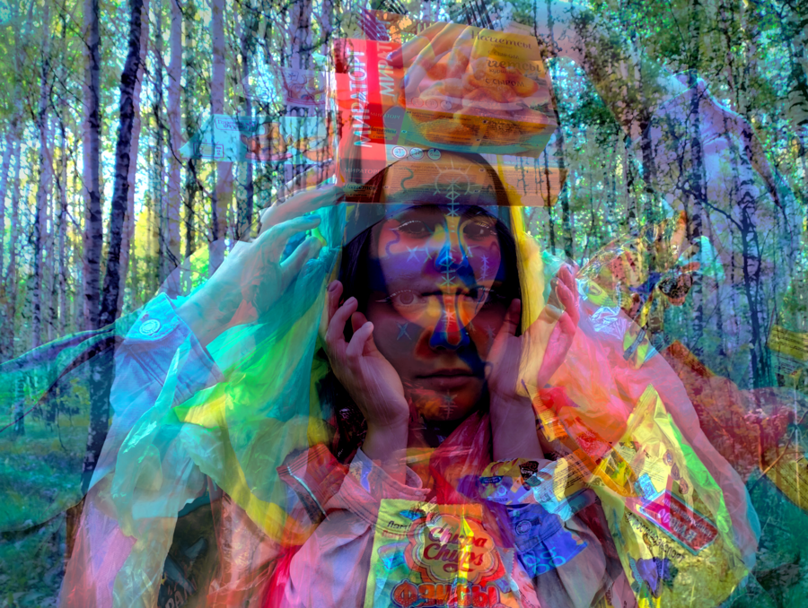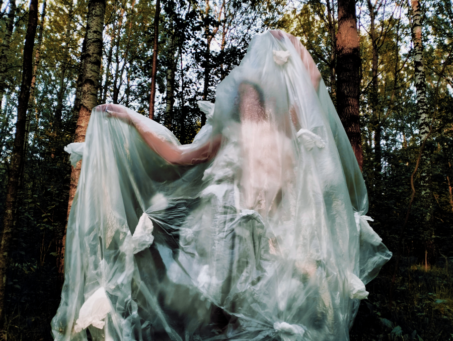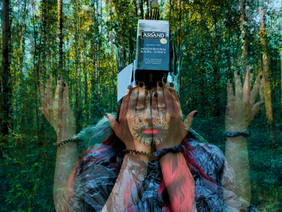 В фотографиях я использую наложение, что помогает мне показать искажение мира и увеличение числа одинаковых богинь — увеличение количества мусора.