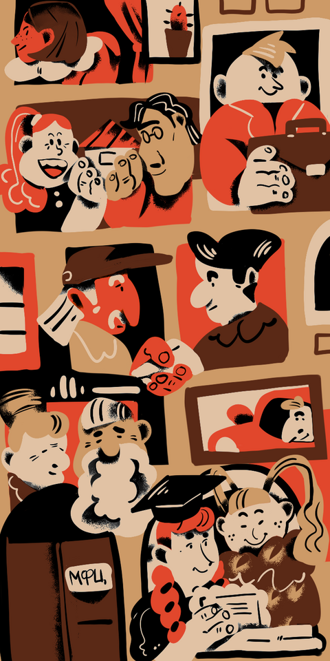На каждом панно изображен большой спектр услуг, которые предоставляет заведение: от выдачи паспорта до записи ребенка в школу.