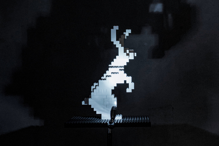 Скульптуры не-кроликов созданы из конструктора Lego. Это доступный и знакомый материал, который продолжает работу с игровой тематикой, а также подчёркивает идею доступности создания искусства.