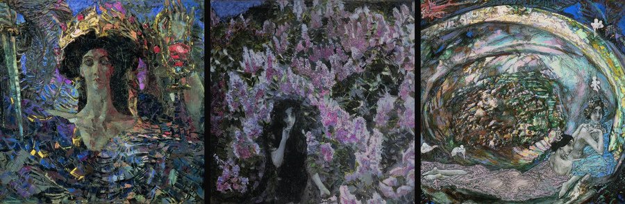 Шестикрылый серафим (1904), Сирень (1900), Жемчужина (1904) | Богатырь (1889), Пан (1899), Девочка на фоне персидского ковра (1886) | Михаил Александрович Врубель