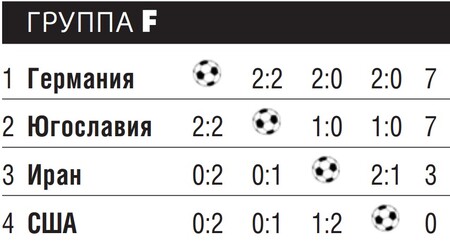 Югославская команда, несмотря на скромные показатели в поединках с явными аутсайдерами, выглядела более цельно, чем занявшие первую строчку немцы. Атаками управлял опытный Миятович, а впереди задавали тон Станкович и Огненович. Правда, специалисты заметили слабое место югославской сборной, по политическим причинам долгое время отсутствовавшей в элите мирового футбола: поведя в счете, команда слишком рано успокаивалась. Игра с немцами наглядно это продемонстрировала, как, впрочем, и матч с Ираном, где от команды потребовались значительные усилия, чтобы вернуть себе инициативу.