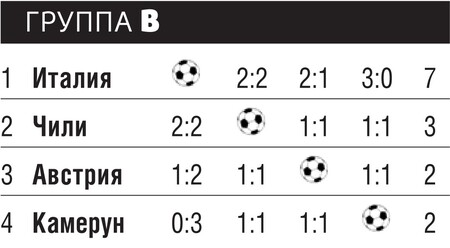 Камерунец Омам-Бийик, два гола которого в заключительном матче с Чили отменил венгерский судья Вагнер, утверждал, что во Франции хотели как можно быстрее отделаться от африканских команд. Большинство специалистов имели на этот счет иное мнение. Они были уверены, что камерунцам следует винить в неудаче в первую очередь себя. Судейство в поединке с Чили было и правда не на высоте, однако удаление двух игроков сборной Камеруна не вызвало сомнений — столь очевидны были грубые нарушения правил. Потеря концентрации в добавленное арбитром время в матче с Австрией привела к еще одному ничейному результату, а поединок с Италией камерунцы начисто проиграли. Мощный центрфорвард итальянцев Вьери записал на свой счет два гола, еще один забил Ди Бьяджо.