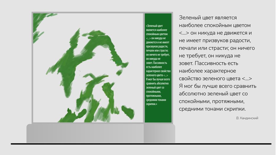 В проекте на примере творчества В. В. Кандинского рассматривается важность понимания историко-культурного контекста при восприятии художественных произведений и использование мультимедийных инсталляций в выставочной деятельности для погружения зрителя в этот контекст.