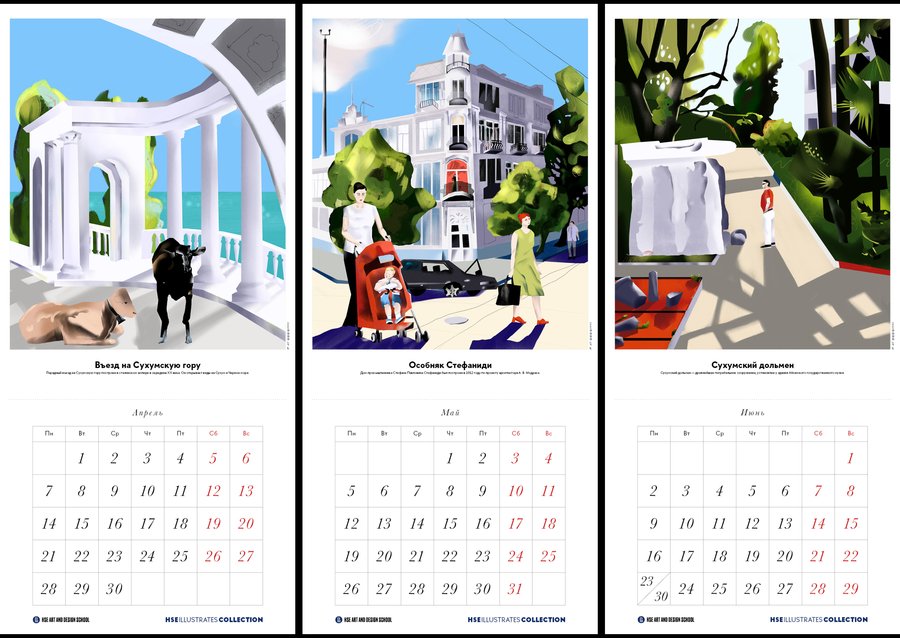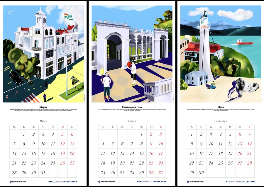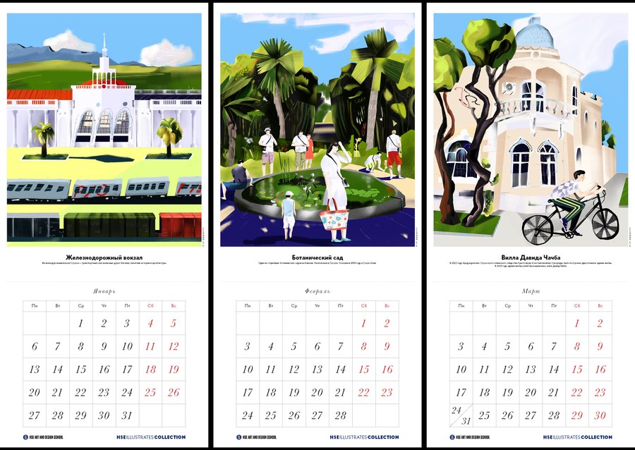 The calendar is a journey through my hometown, Sukhumi. Each painting is a small piece of the city that reflects its unique atmosphere. You can find pictures of landmarks in the calendar, as well as places that I think are attractive and interesting. This calendar will be a useful tool for those who want to become more familiar with Sukhumi and its unique features.