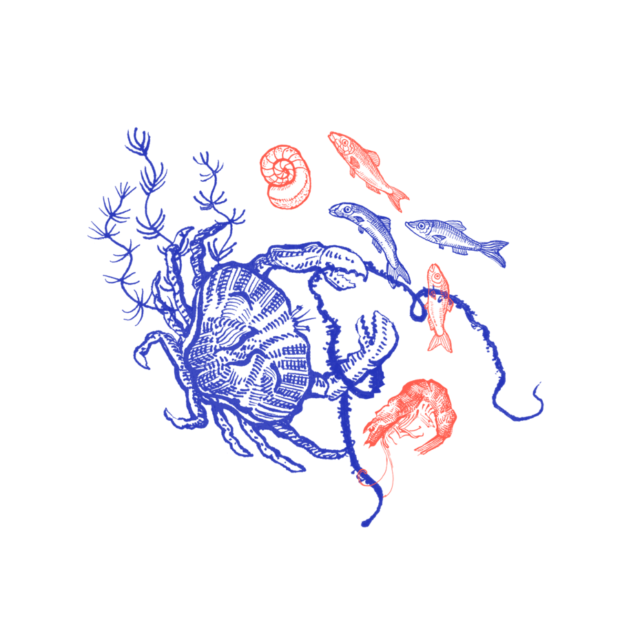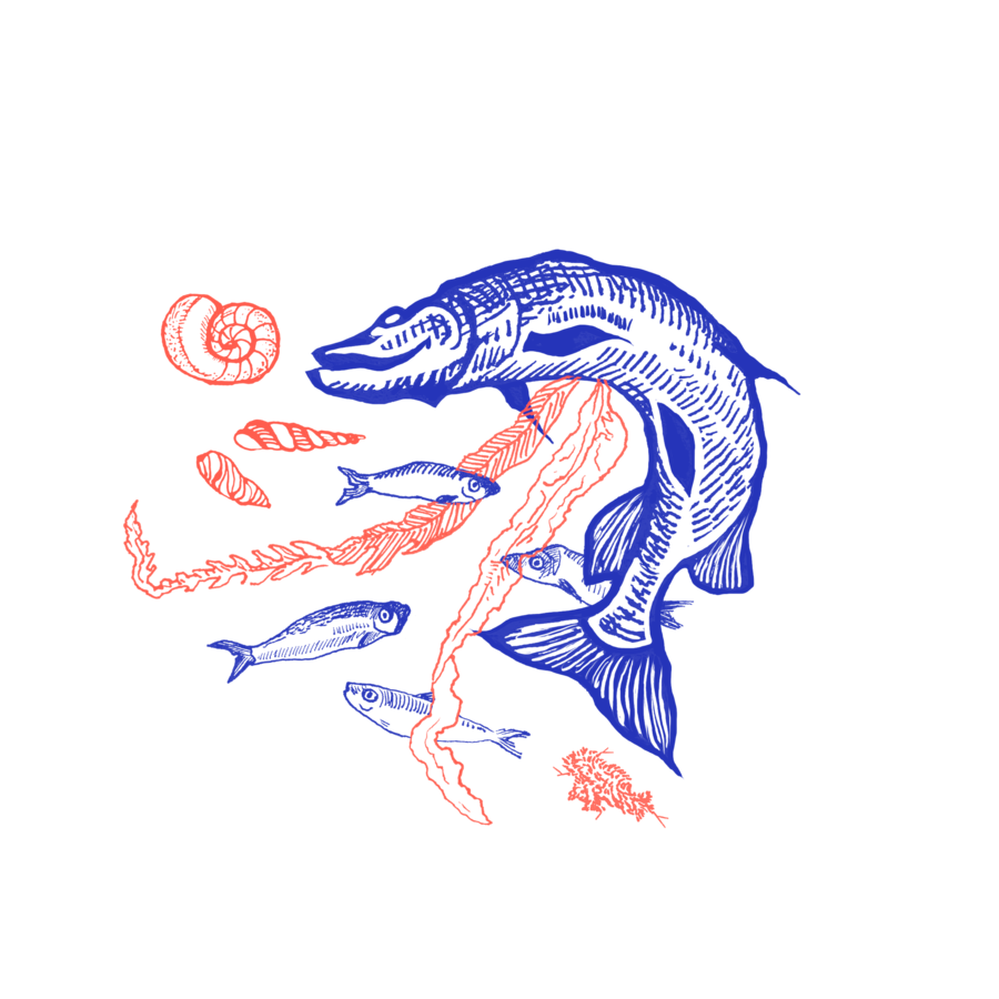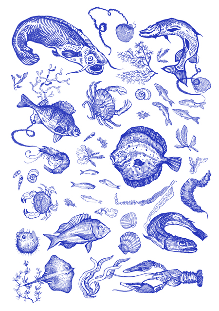 Ребрендинг ресторана средиземноморской кухни «Рыба моя» на основе серии иллюстраций рыб и морепродуктов. Иллюстрации выполнены лайнером в традиционной технике. Акцент на «живой» рисунок, что является метафорой свежей и натуральной продукции ресторана.