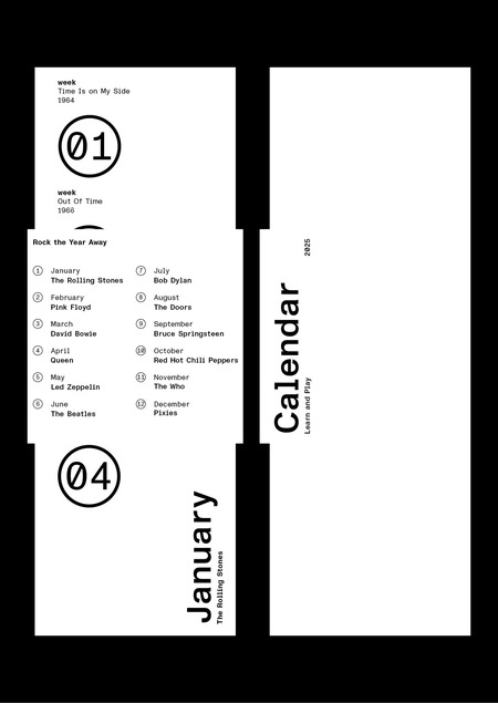 Идея календаря заключается в том, что в течение года постепенно изучается новая песня с помощью гитарных аккордов. Таким образом, за год можно научиться играть по 4 песни от 12 разных рок исполнителей 60-90ых годов.