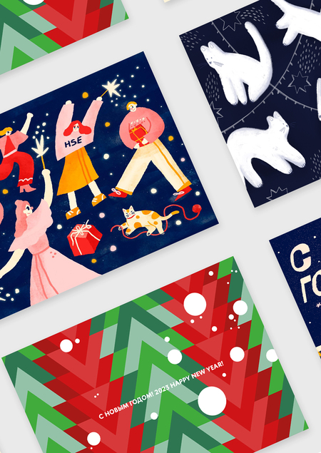 В преддверии Нового, 2023 года дизайнеры и иллюстраторы Школы дизайна НИУ ВШЭ создали серию копоративных поздравительных открыток, в которых была отражена праздничная тематика — в том числе наступление Нового года по восточному календарю.