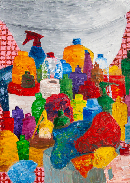 Воспринимая подобный (бес)порядок вещей как защиту от невзгод, я описываю с помощью живописи многообразие защитных конструкций, которые возводятся по индивидуальному проекту в каждом жилище. Натюрморт здесь — наиболее подходящий жанр для бытописания современного человека.