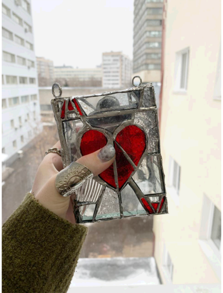 Проект, выполненный во втором модуле вариатива «Творческая мастерская по мозаике и витражу». В ходе работы я создала два витража, один в форме светильника, а другой в форме гирлянды. Светильник вдохновлен образами игральных карт, а гирлянда представляет собой группу фигур летучих мышей.