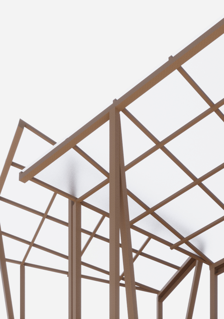 Для обеспечения удобства расположения и сборки, была выбрана модульная конструкция. Из типовых ячеек можно собрать 4 вида конструкций: торговый ряд, двойная, трилистник и ротонда.