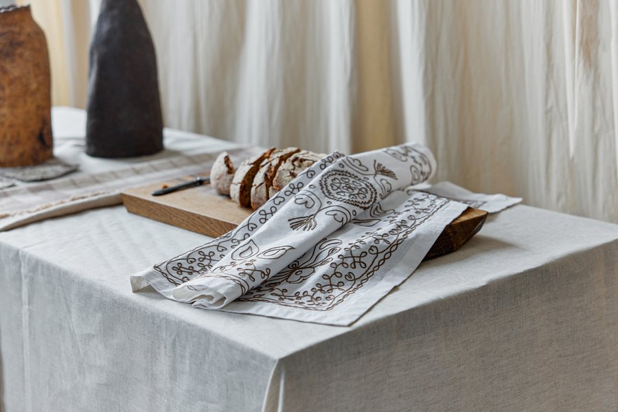 в татарской вышивке наиболее распространенным является тамбурный шов. тамбурная вышивка (элмәле чигү) в искусстве татар, традиционный способ декорирования тканей и для текстиля для дома. мы добавили старинные узоры на современные предметы кухонного текстиля.