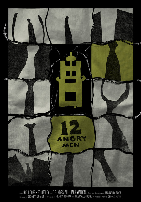 Для создания плаката к фильму использовались реальные кадры галстуков каждого из 12 присяжных. «Провода» вручную выложены из нитки.