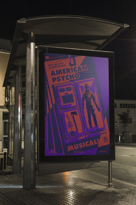 Комедийный мюзикл по «Американскому психопату» отличается в первую очередь атмосферой: он динамичный, местами сюрреалистичный и имеет строгую цветовую гамму освещения: фиолетовый, красный и синий.