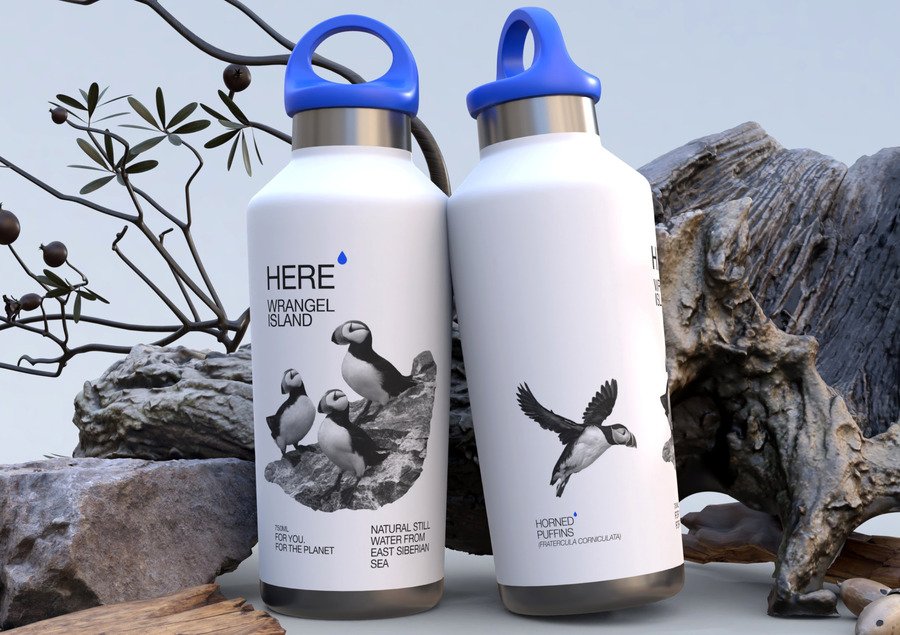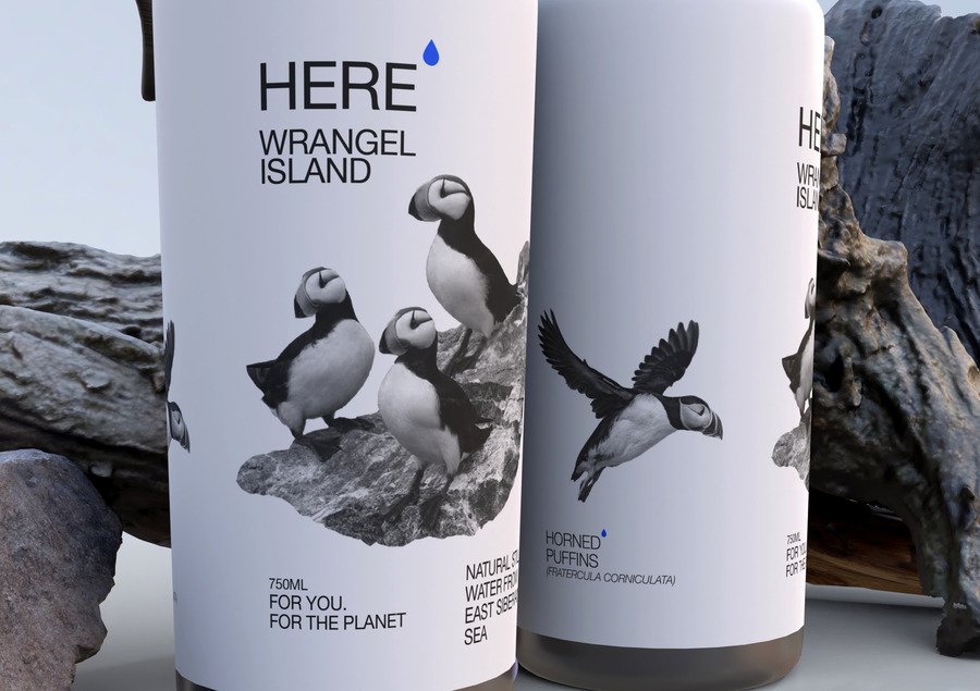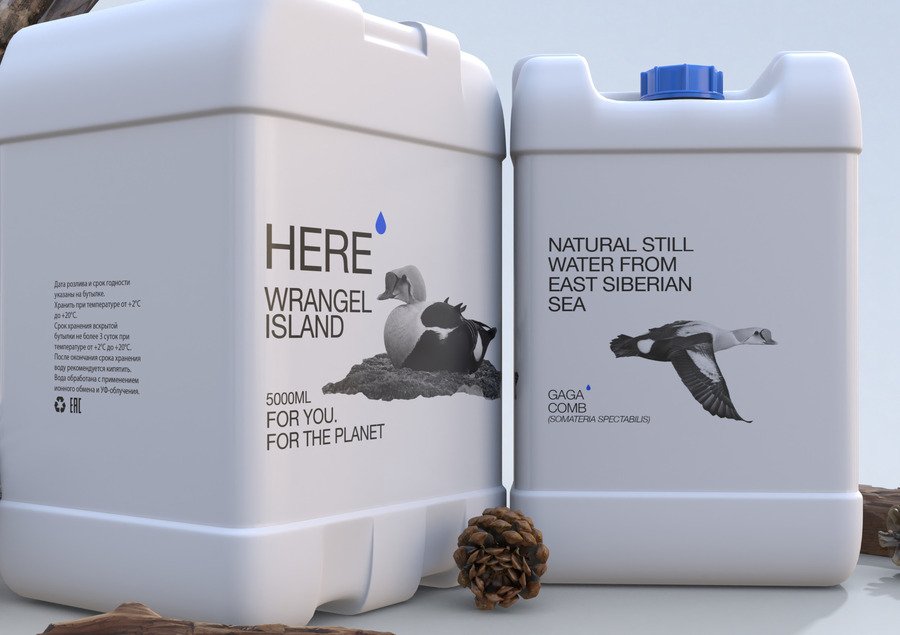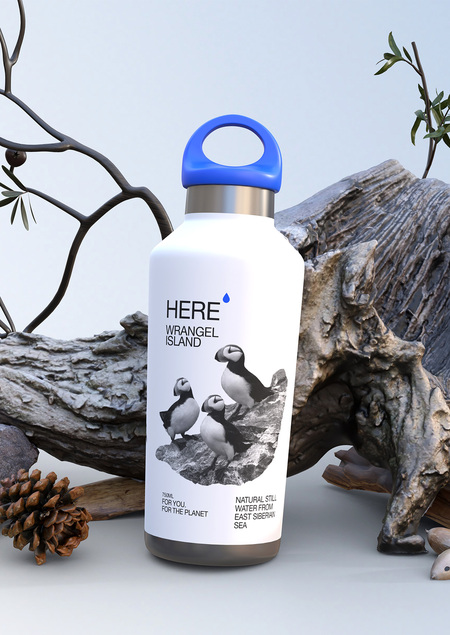 Остров Врангеля является северной точкой гнездования около 169 птиц и местом обитания более 40 видов животных. Бренд воды HERE укажет на красоту далекого края Чукотки и расскажет об удивительной фауне острова Врангеля