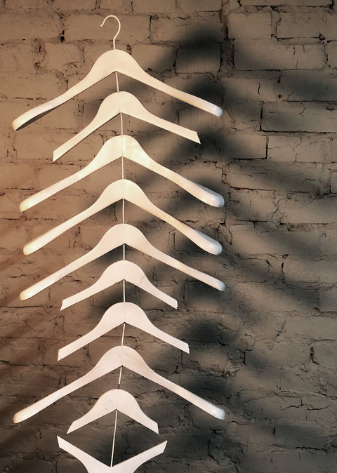 Раскрывая тему взаимосвязи человека и театра, я постаралась выстроить ассоциативный ряд, найти точную и необычную метафору современного театра. Цепочка размышлений и поисков привела меня к цитате Станиславского: «Театр начинается с вешалки». Если понимать эту фразу буквально, то вешалка становится своебразным центром, тем, на чем держится и берет начало все остальное. И если театр — место соединения всего человеческого, то стержень — это позвоночник.