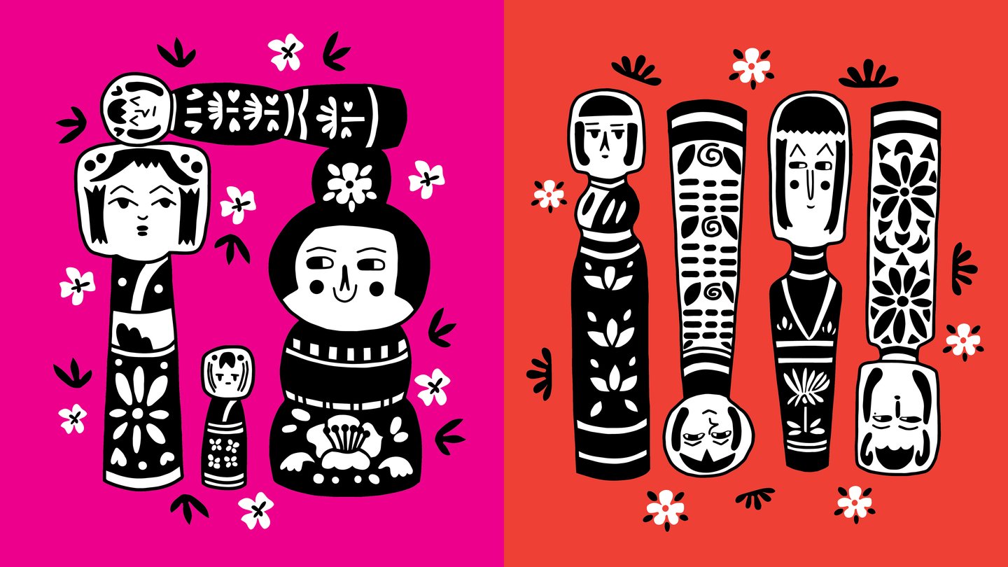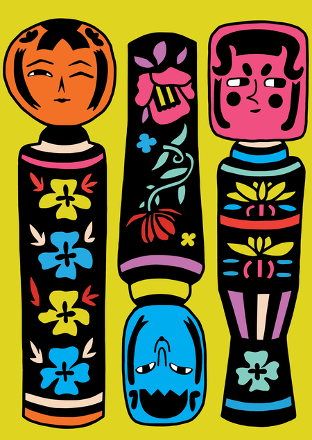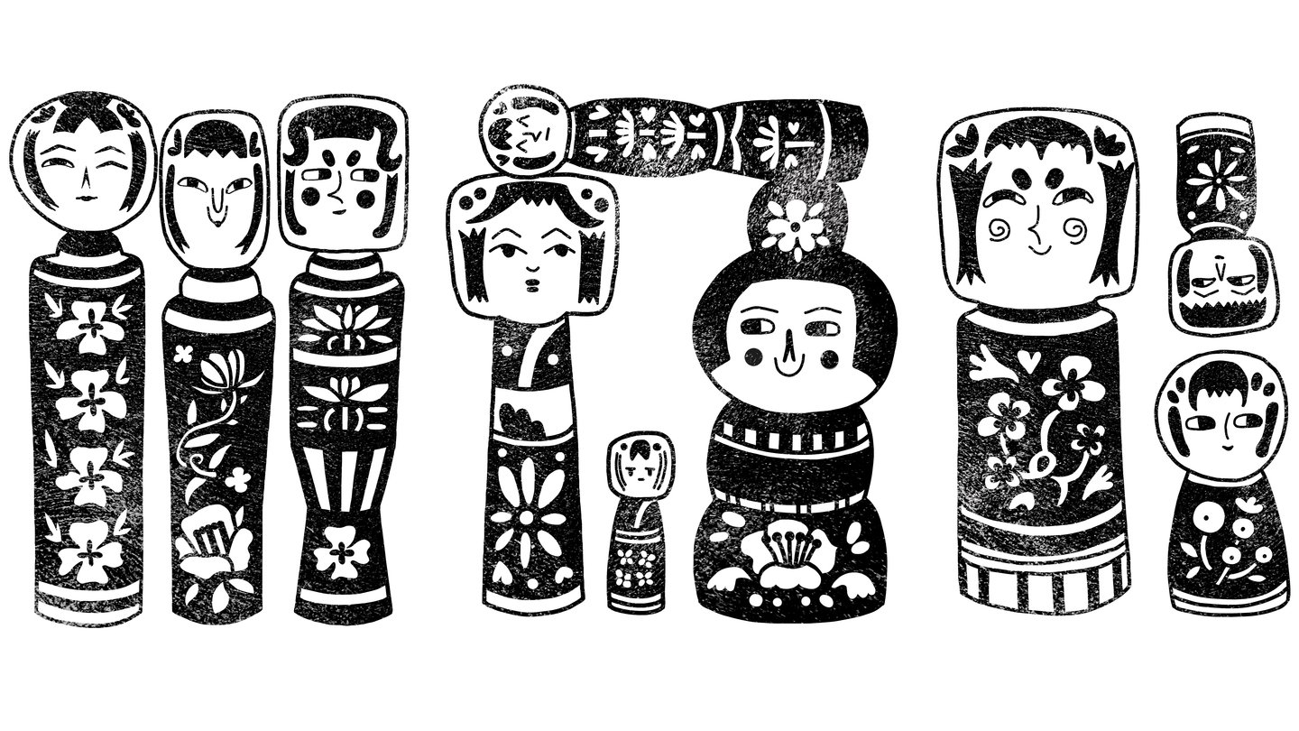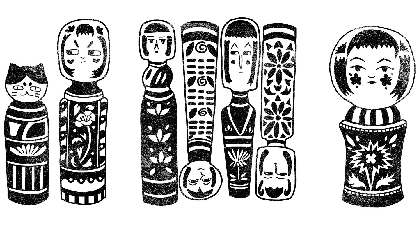 Для этого проекта я решила сделать стилизованные иллюстрации японских кукол Кокэси (小芥子).