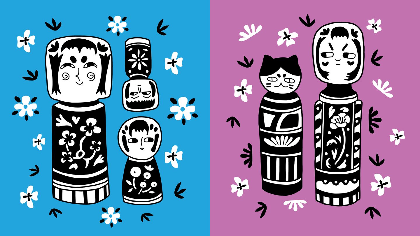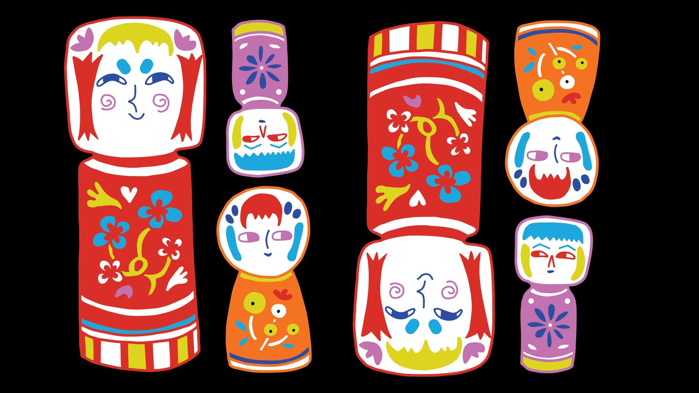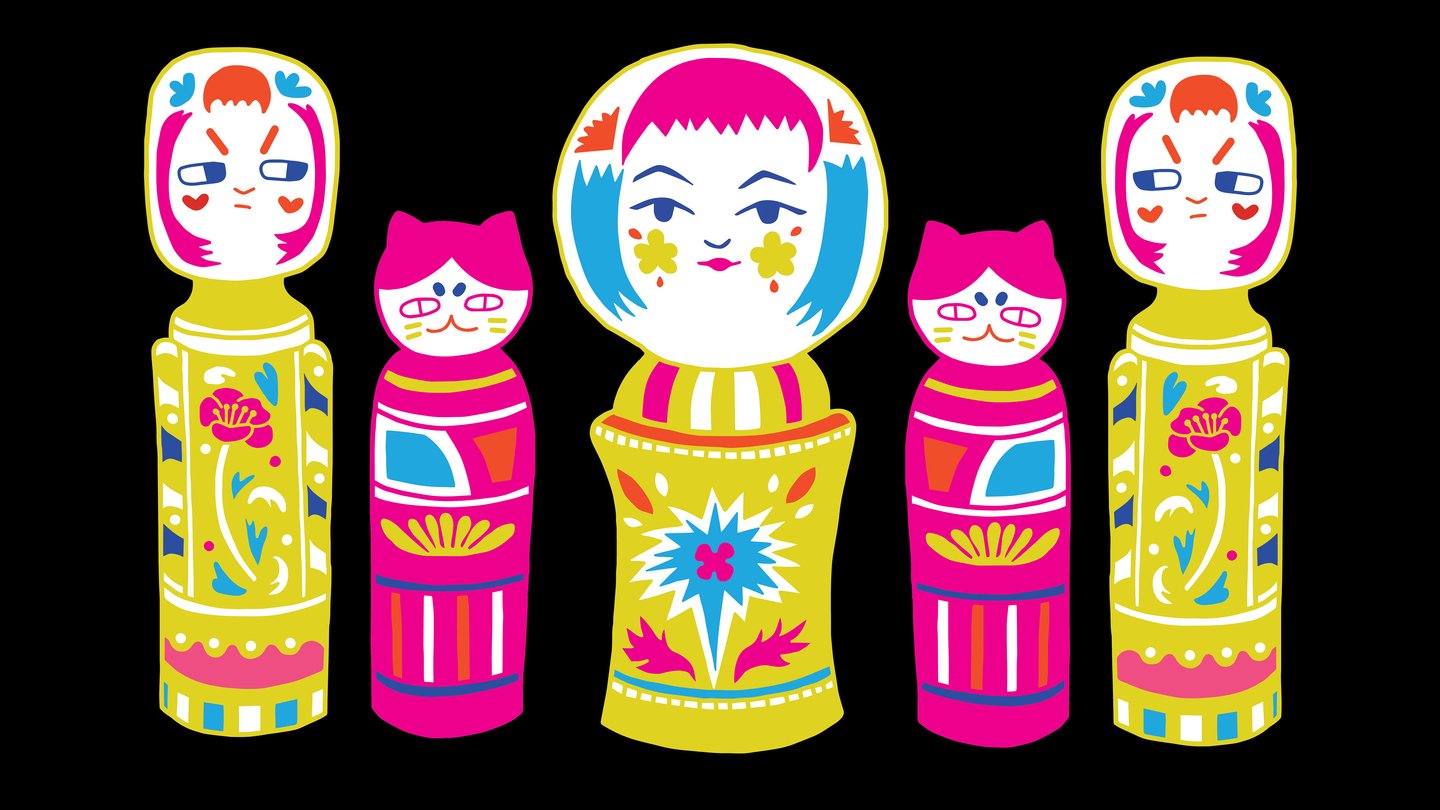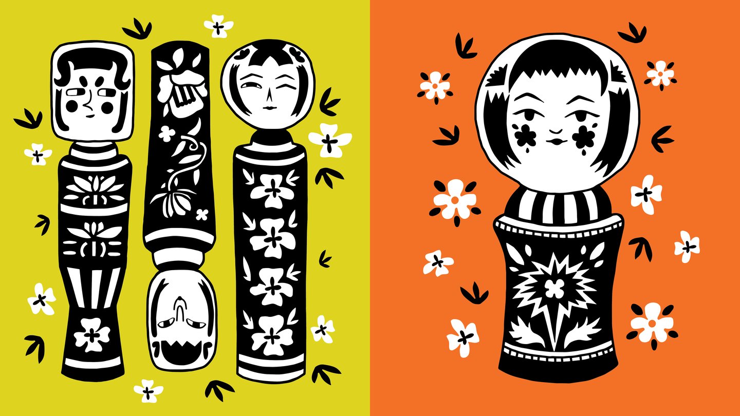Для этого проекта я решила сделать стилизованные иллюстрации японских кукол Кокэси (小芥子).