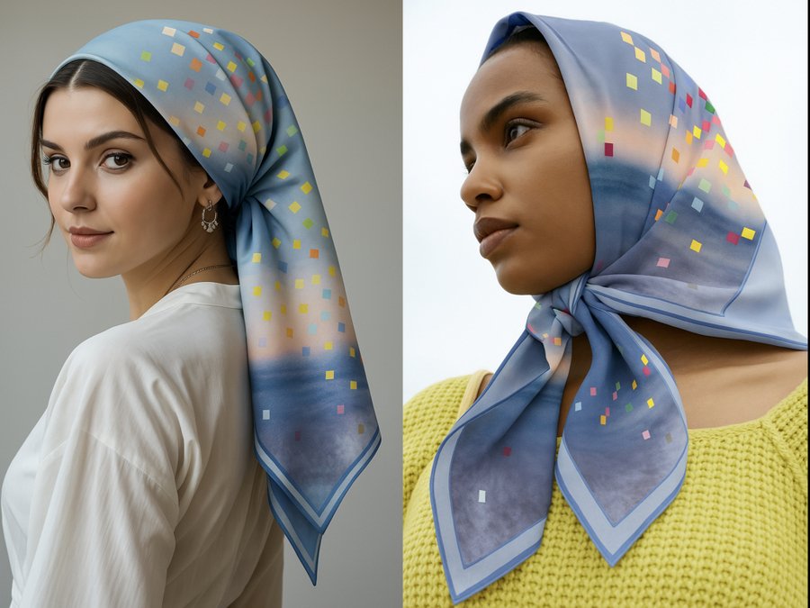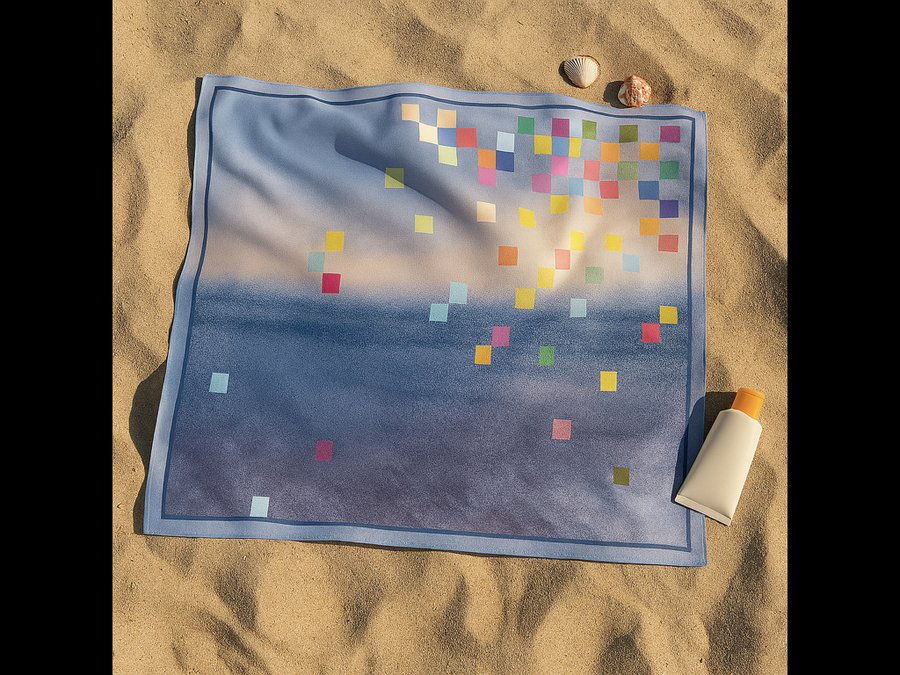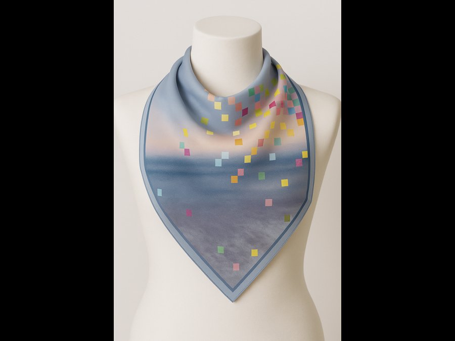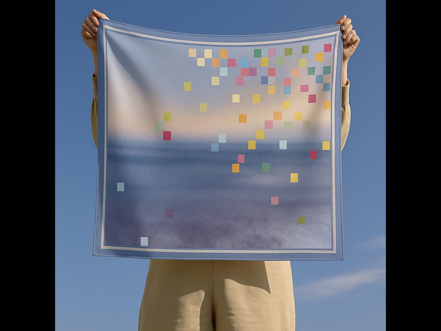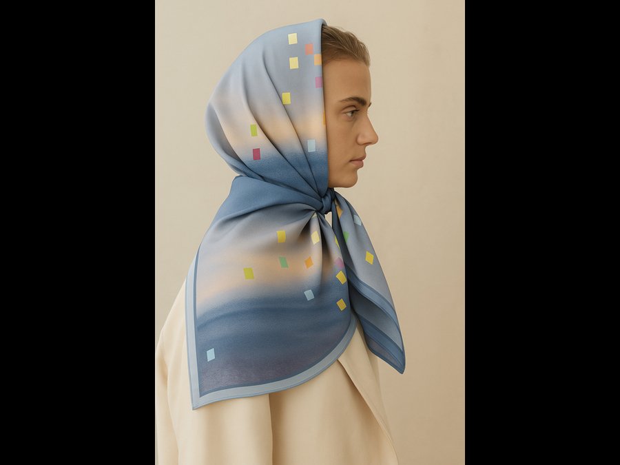 Этот платок — визуальное выражение эмоционального шторма. В основе дизайна — авторская фотография пляжа, передающая ощущение пространства, воздуха и бесконечности.