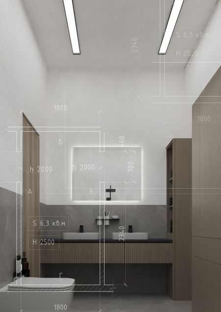 Альбом содержит рабочие чертежи санузла загородного дома, разработанные в рамках предыдущего этапа проектирования. В комплект входят планы с расстановкой мебели, виды, аксонометрия и визуализации санузла. Чертежи содержат данные для строителей: размеры и технологии монтажа