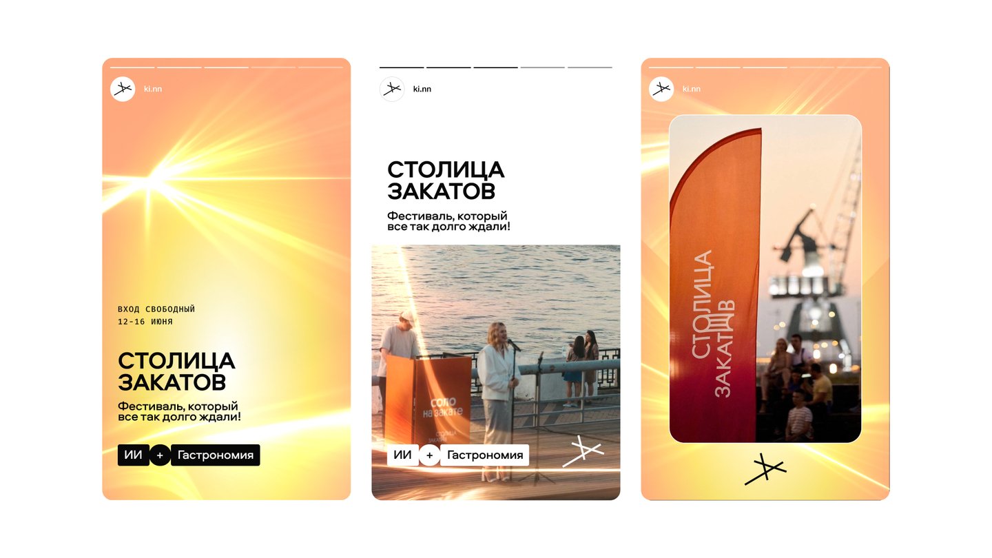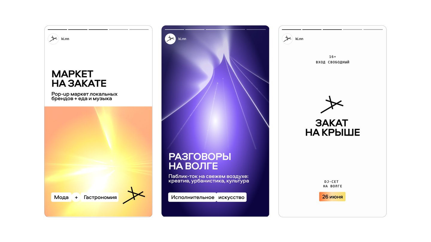Разделение визуала на дневное и ночное через градиенты, отражающие ритмы жизни региона и атмосферу Нижнего Новгорода, где особенно ценят закаты.