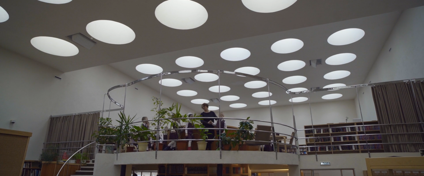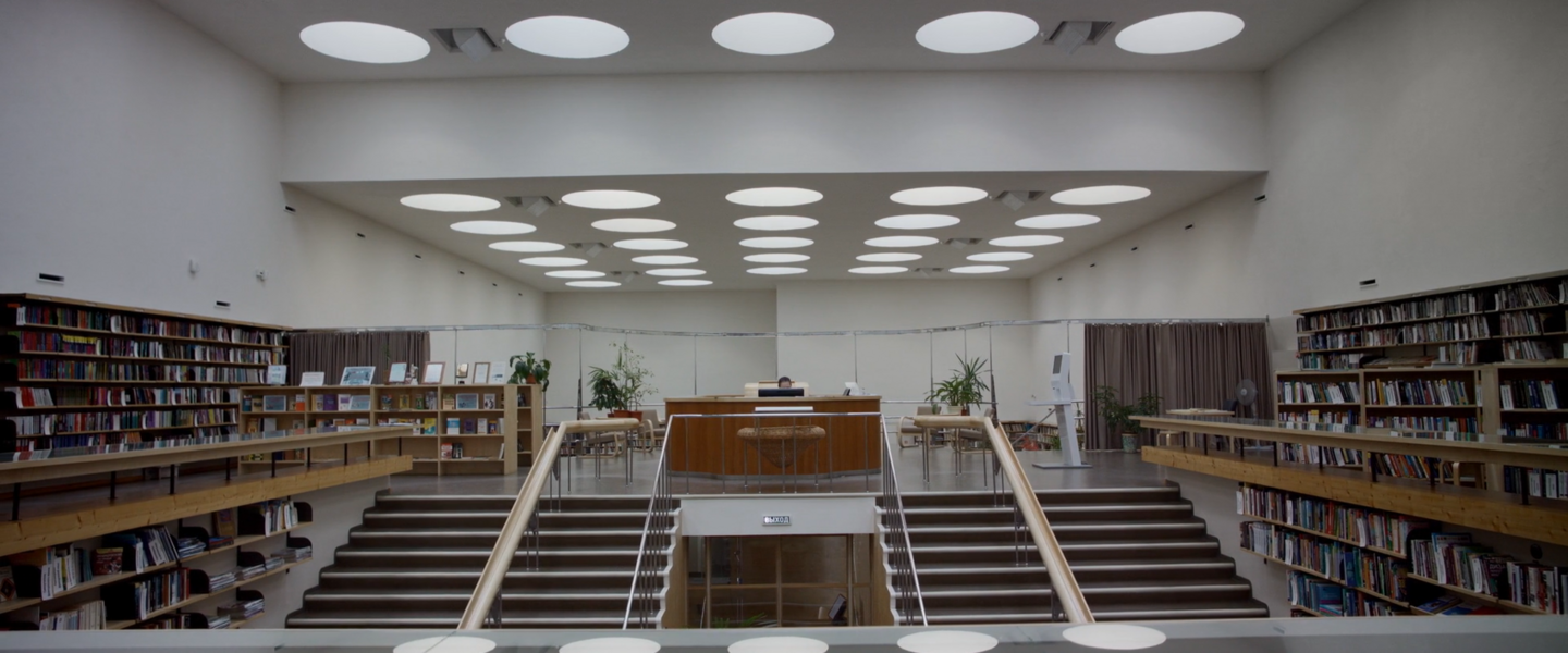 Интерьер библиотеки в Рованиеми, Финляндия, 1965 г., Алвар Аалто