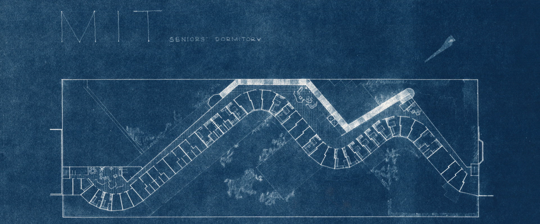 В общежитии Массачусетского технологического института Аалто продолжает тему плавной динамичной архитектуры, которую мы можем видеть в финском павильоне всемирной выставки в Нью-Йорке. Он стремился к тому, чтобы из каждого окна изогнутого здания был вид на реку.