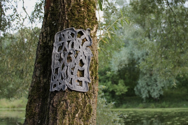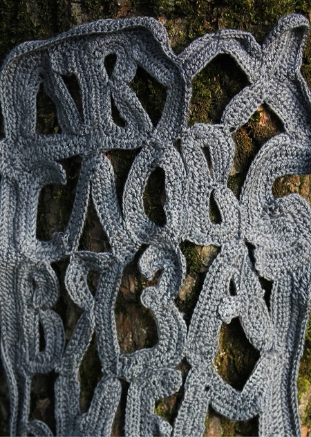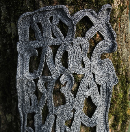 Вязаный Арт-объект Ирония построенная на фразе «Двух слов связать не может» Материал — пряжа 2024 год