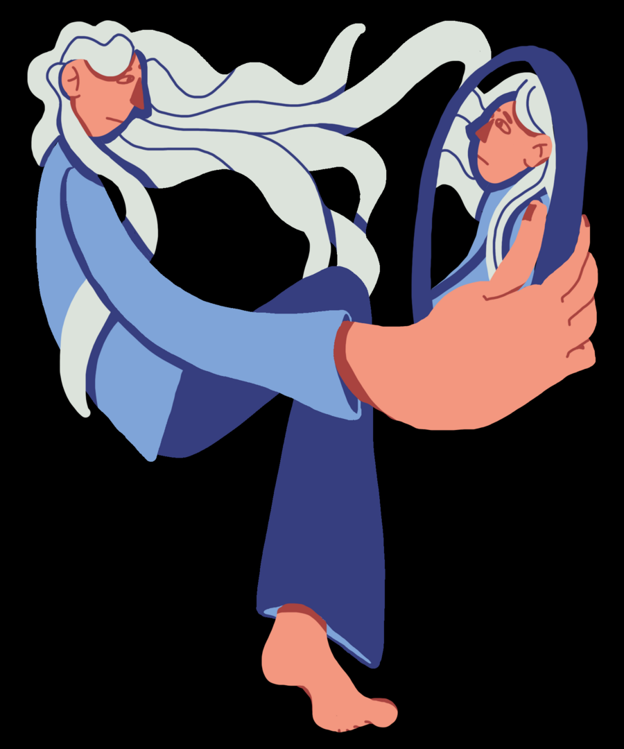 Рефлексия — состояние потерянности и обращение к самому себе, внутреннему «Я». Для меня это много разговоров с зеркалами, меланхолия и грусть.