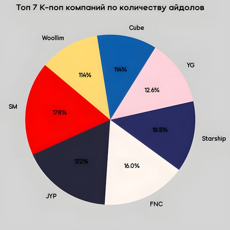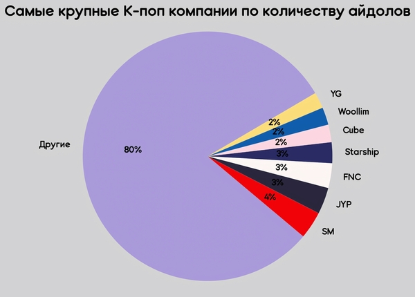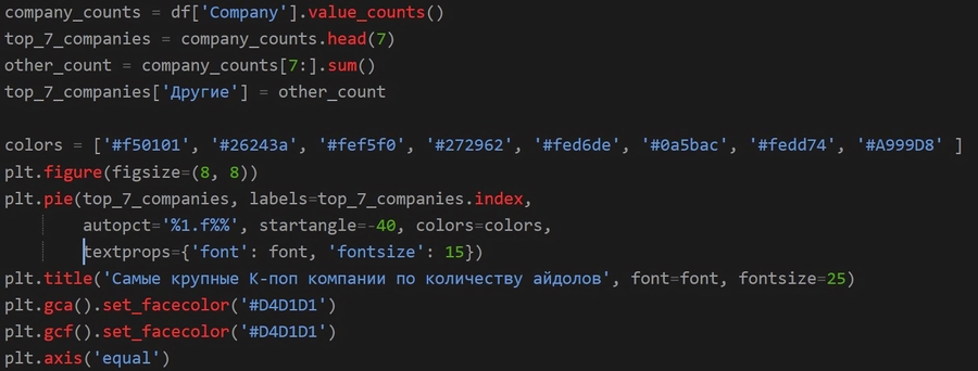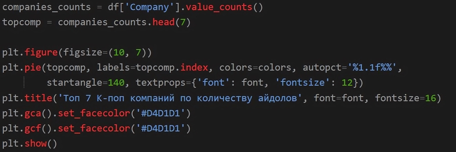 Увидев, что в найденной таблице есть столбик, в котором указана компания, я сразу подумала о круговой диаграмме с распределением самых «популярных» компаний, контракты с которыми заключили больше всего артистов.