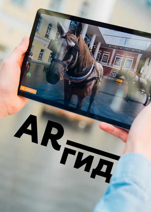If we consider the AR guide from a technical point of view, then this is a very modern work. It uses markerless technology, the latest in AR technology fashion. The user does not need to download QR codes or tags — he just walks around the building, studies the graphic material, and also reads and listens to the accompanying text.