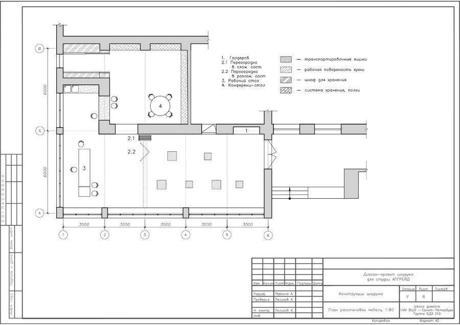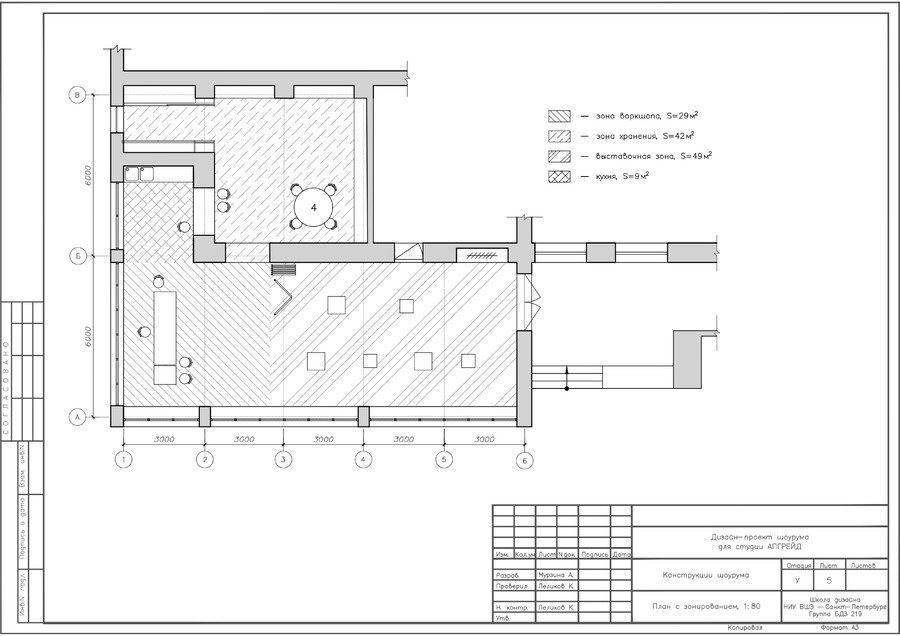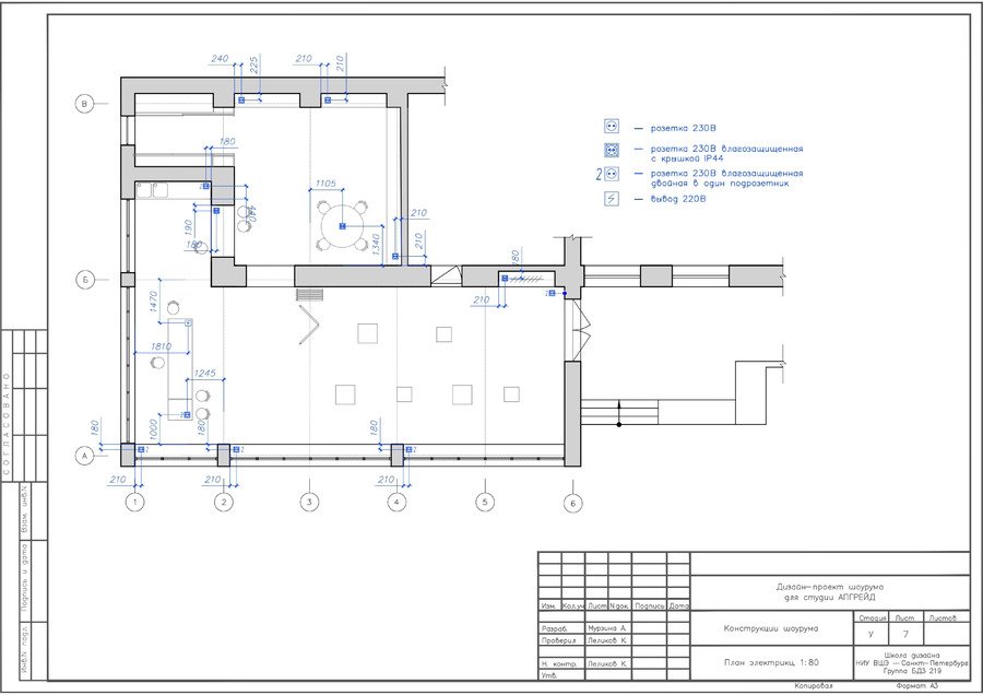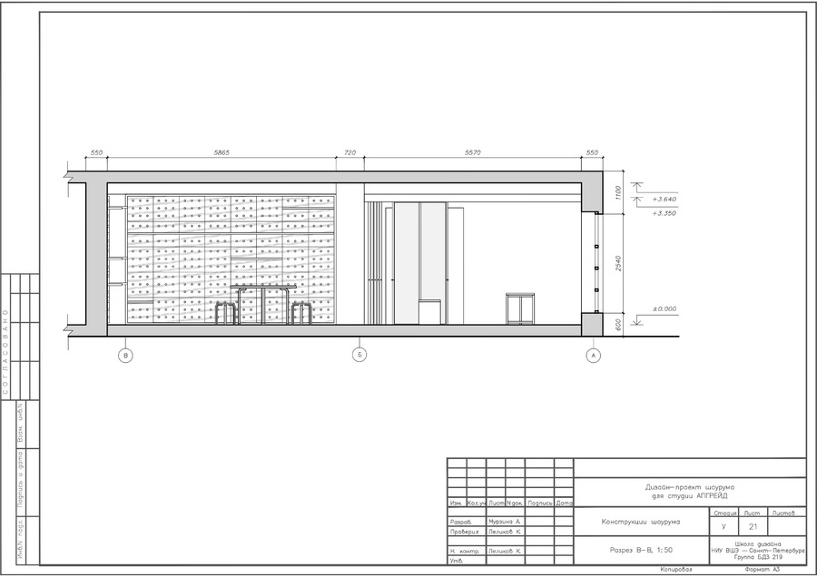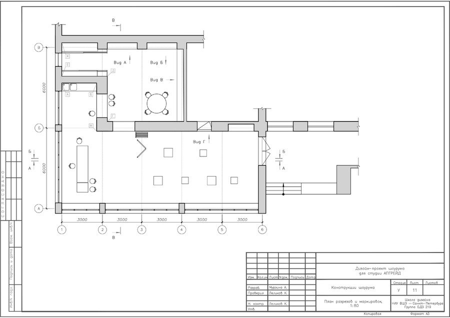 ДК Кирова на Васильевском острове в г. Санкт-Петербург находится под охраной КГИОП, поэтому нельзя было менять планировку проектируемого участка. В шоурум посетители могут попасть не только из помещения, но также и с улицы.