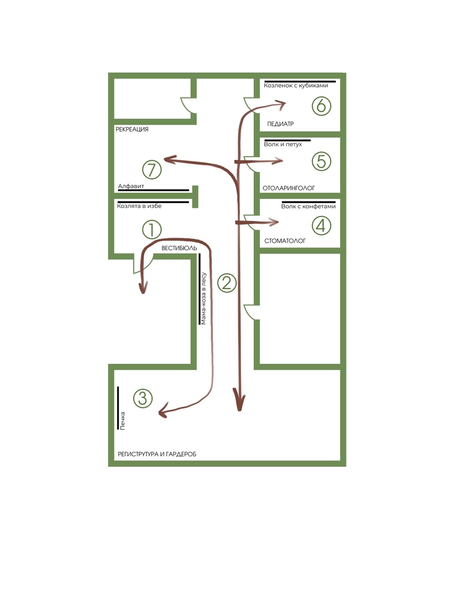 Козлята с иллюстраций приобретают роль проводников и сопровождают посетителей, превращая обычный визит в захватывающее путешествие. Они спасают детей от переживаний в кабинете врача.
