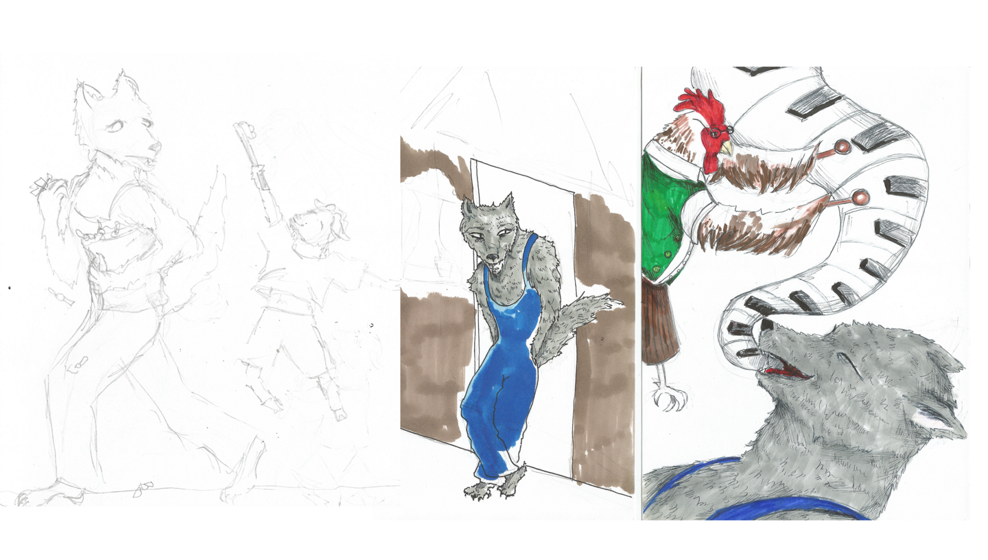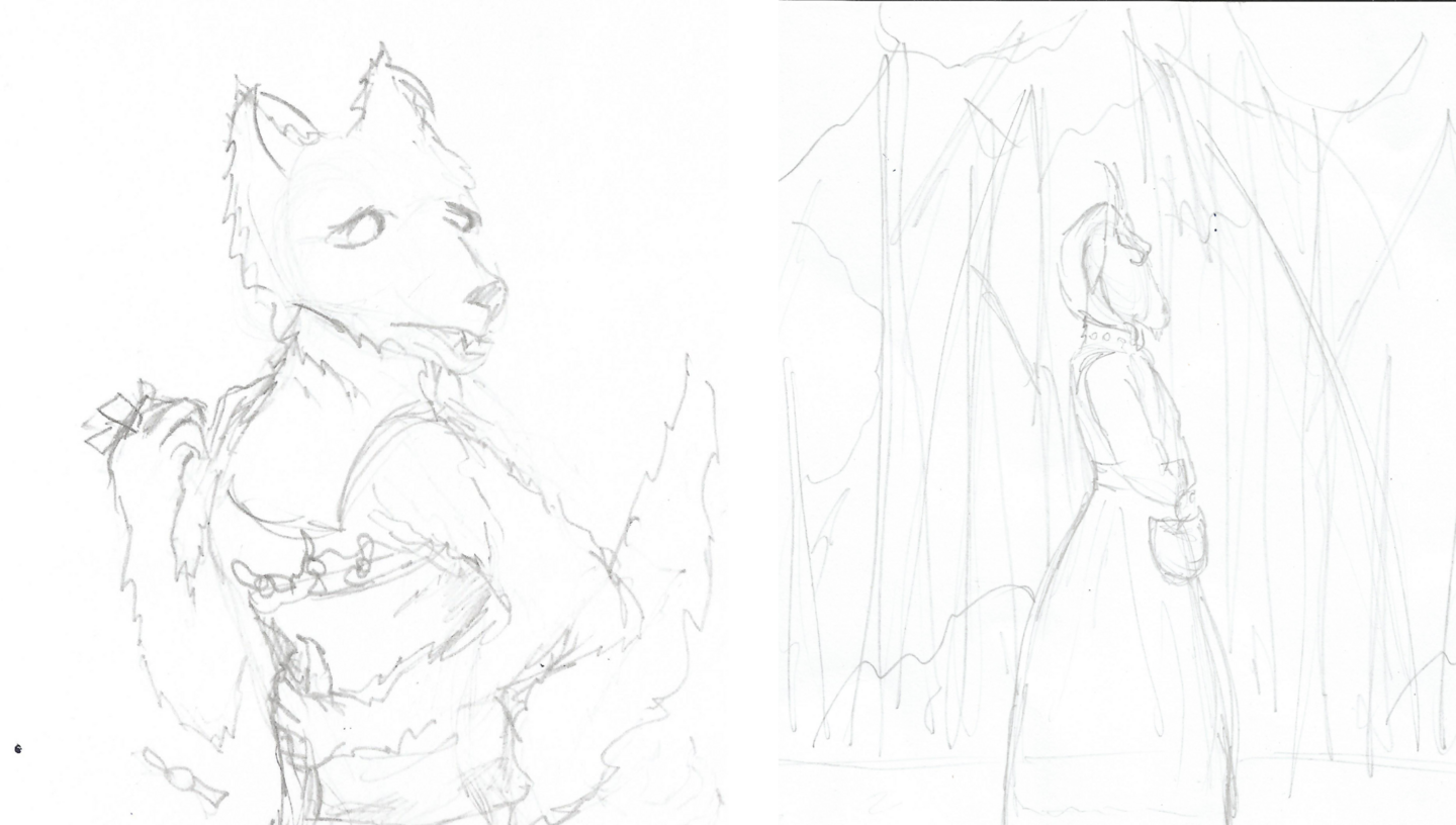 Финальным иллюстрациям предшествовал этап поиска образа и эксизировния.