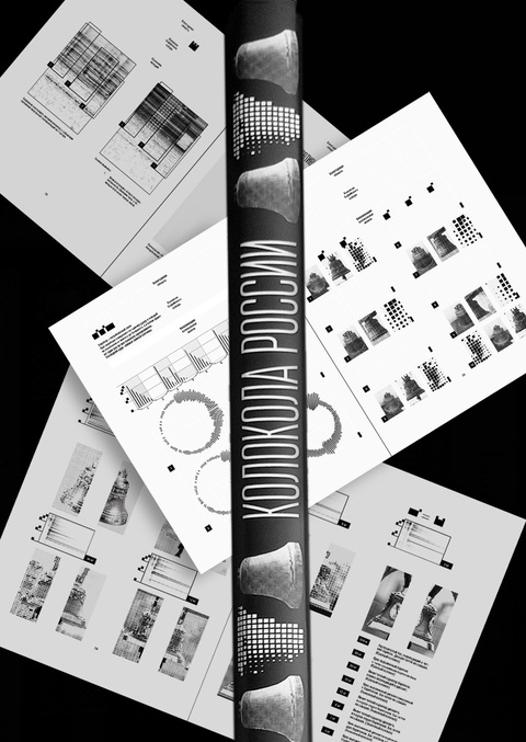 Концепция визуального исследования – это сравнение визуальной составляющей колокола с ее звучанием. Анализ каждой мелодии разных звонниц и разбор звуков по тональности с помощью переведения звука в спектрограмму. С целью показать величие уникальной и многоступенчатой культуры колокольного ремесла в России, начиная с XVI века. Также мое визуальное исследование помогает ощутить звук с помощью зрительного контакта с книгой.