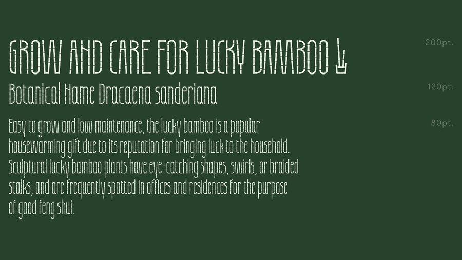 Перед первым занятием по шрифту мне приснился сон, в котором преподаватель дал задание: придумать концепцию для шрифта на основе своего комнатного растения. У меня дома растёт Драцена Сандериана, известная также как Лаки Бамбук, зовут его Данила. А продолжение вы уже знаете)
