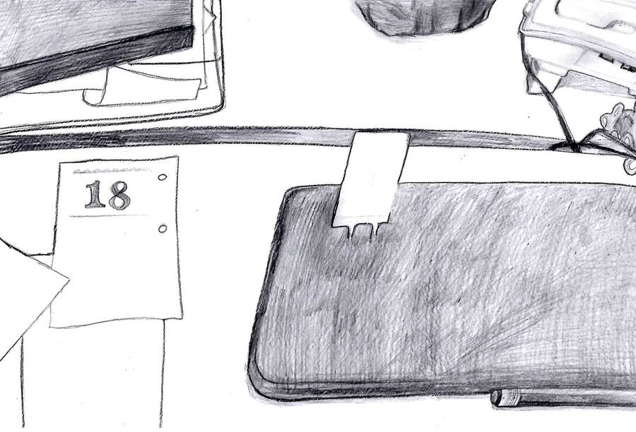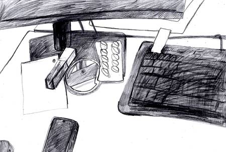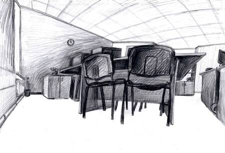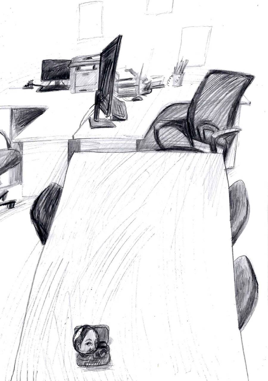 Проект представляет собой серию рисунков — натюрмортов, интерьеров, автопортретов в интерьере и в натюрморте. Это исследование маленького офисного мира, в котором человек может проводить огромное время своей жизни. Все офисы похожи один на другой. Человек оказывается в нём наедине с одинаковой мебелью, одинаковыми канцтоварами. Что он чувствует, находясь там внутри этой коробочки?