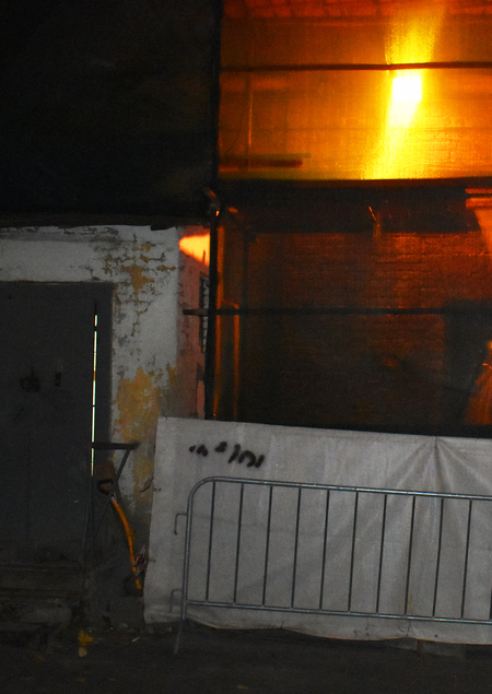 Гуляя по центру вечерней Москвы, я обратила внимание на жизнь, которая остаётся незамеченной в течение дня. С наступлением вечера, когда рабочие покидают место, за занавесом сетки начинает кипеть жизнь, напоминающая театральную сцену с декорациями, актёрами и светом софитов. Скрытая за сеткой, как за кулисами, жизнь кажется недоступной для прохожего, который становится зрителем. Этой серией мне хотелось создать ощущение наблюдения со стороны.