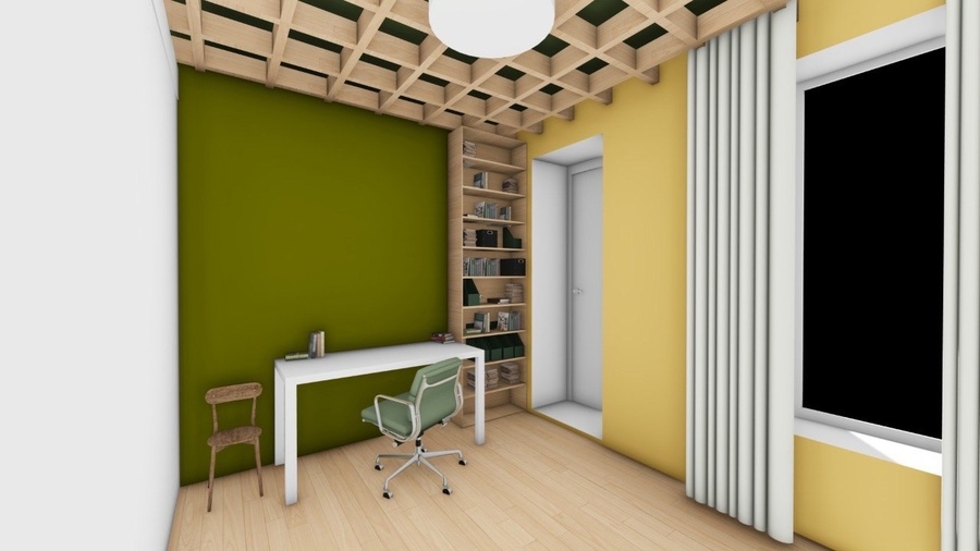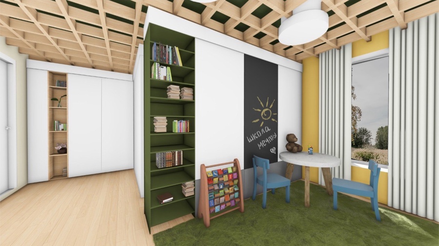 Согласно техническому заданию, помещение многофункционально: зона для индивидуальных занятий, игровая, учебная и хранения.