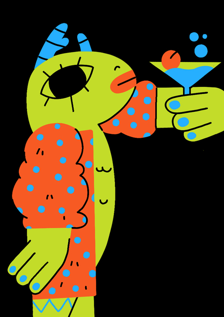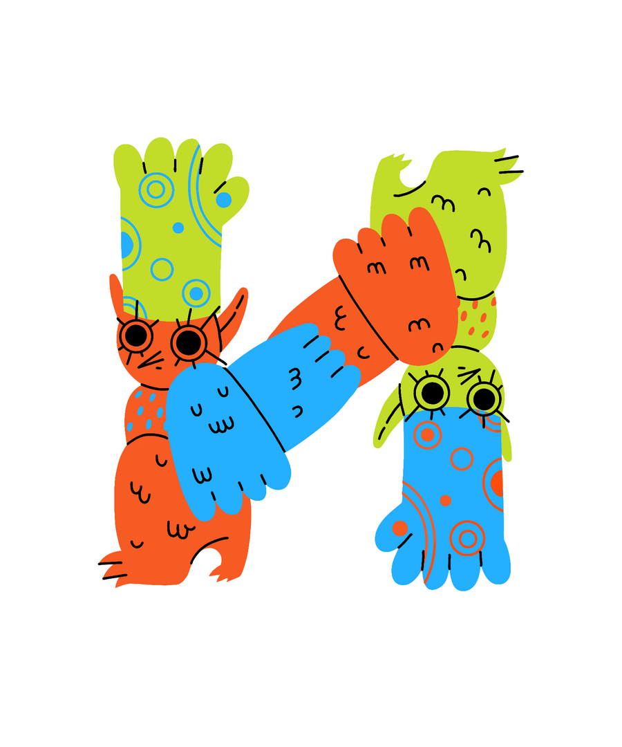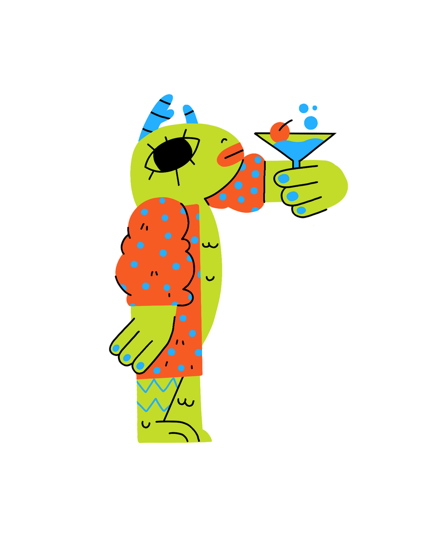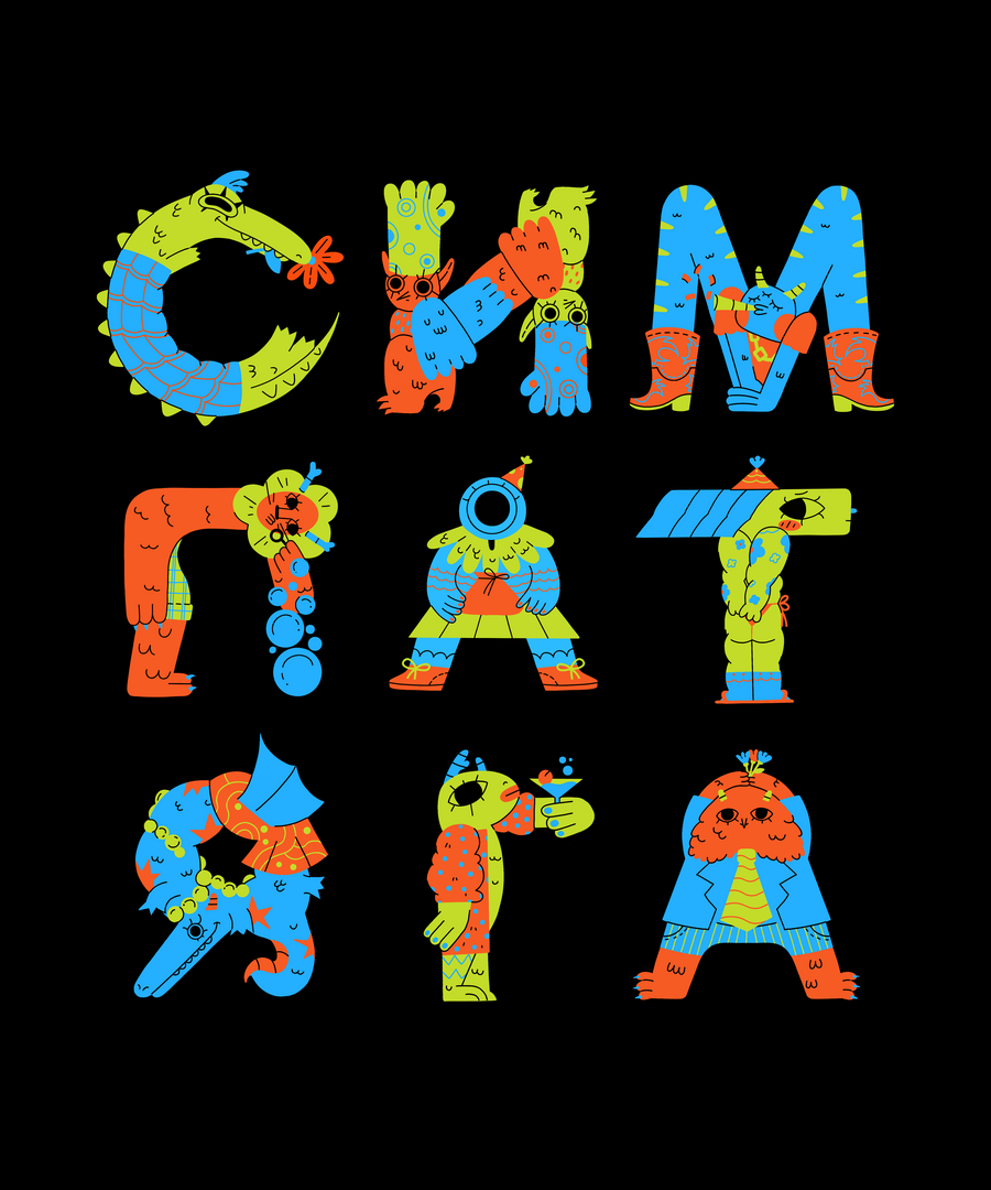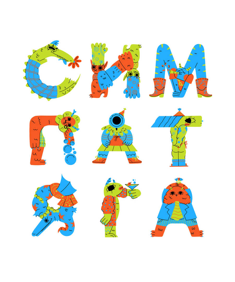 Иллюстрации представляют собой милых и ярких монстров, которые собрались вместе на вечеринке.
