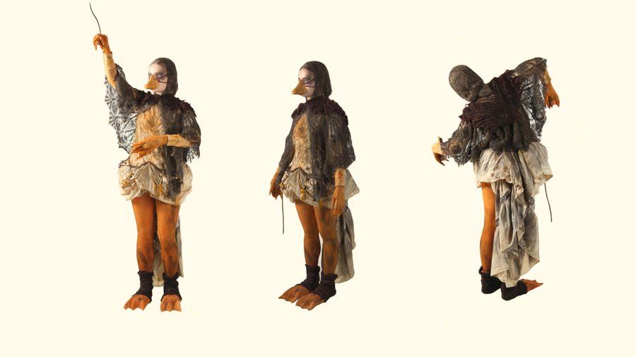 Я вдохновлялась природными птичьими текстурами, рассматривала перья, лапы, клювы настоящих уток, чтобы потом воспроизвести их в костюме.