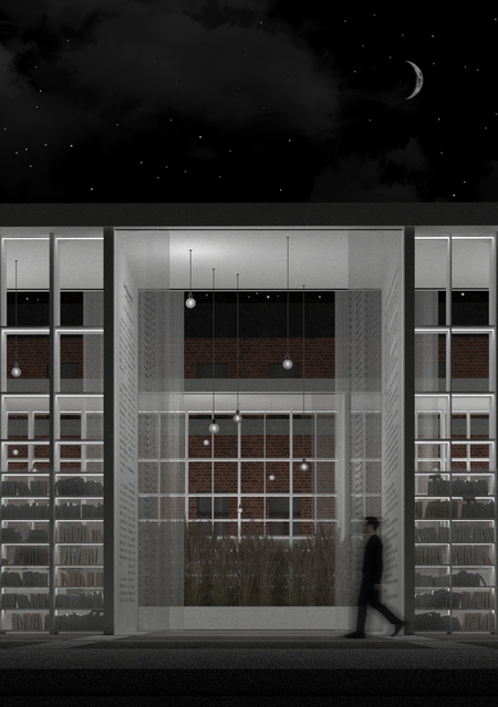 Данная книжная ярмарка располагается на Введенском канале неподалеку от набережной и состоит из некоторого количества книжных павильонов, разделенных между собой стенками, состоящими из металлического каркаса и аквапанелей и напоминающими собой книжные страницы