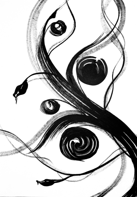 В этой серии я решила совместить природную тему и ощущение потока. Слить воедино свои чувства, вдохновение, жизнь и любимый сюжет. Это полная синергия, где творения природы обретают новые формы и вплетаются в динамичные течения