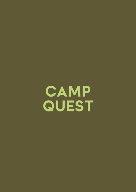 imagine prompt: a vector image of a modern and minimalistic logo with the inscription «Camp Quest». The font is clean and simple, with the text centered on the page. The background is white. use for