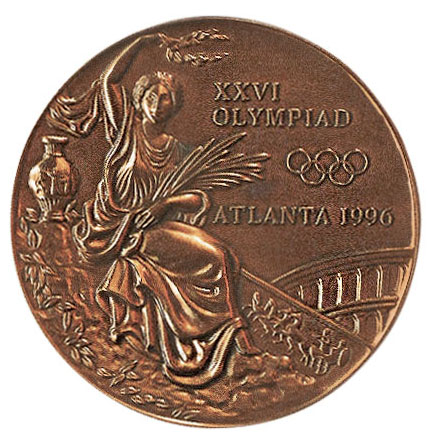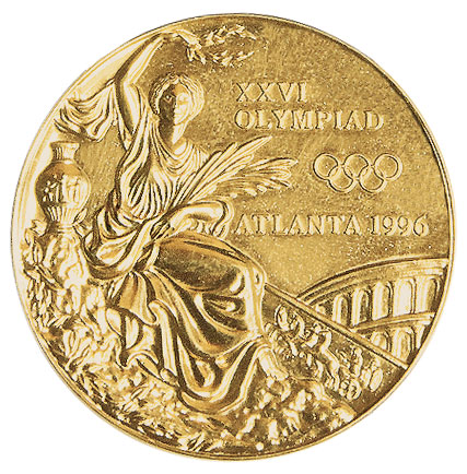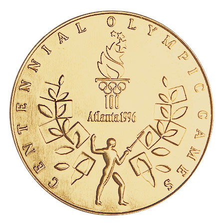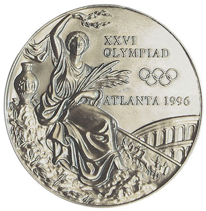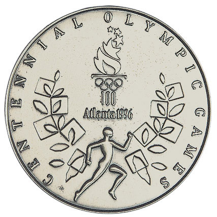 Аверс: традиционный с 1928 года сюжет — богиня победы с лавровым венком и пальмовой ветвью, панафинейская амфора с изображением античных атлетов, напоминающий римский Колизей амфитеатр. Над ним текст на английском языке в три строки: XXVI OLYMPIAD ATLANTA 1996 (XXVI Олимпиада Атланта 1996) и олимпийские кольца.