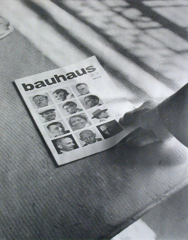 View of the magazine Bauhaus-Zeitschrift, No. 2/3, 2nd year, 1928 being placed on a flat surface, Dessau, Germany — Collection Centre Canadien d’Architecture/Canadian Centre for Architecture, Montréal https://www.anniversary-magazine.com/all/2019/6/11/100-years-of-bauhaus