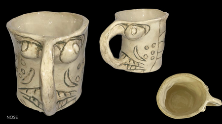 В финальной работе мне было важно показать «живые» вещи (отсюда и название), потому что глина для меня стала именно живым материалом, который во многом живёт свою жизнь и часто не зависит от твоих действий. Этим и были обусловлены эксперименты на кружках и их неряшливый вид.