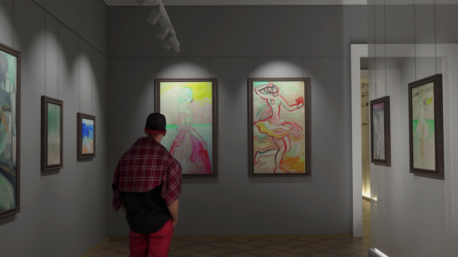 Зал раннего творчества классический, строгий, с белым светом и более классической живописью.