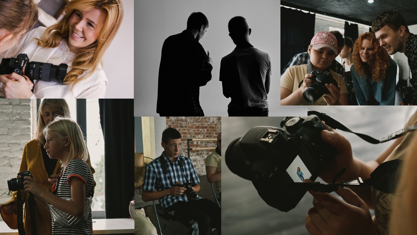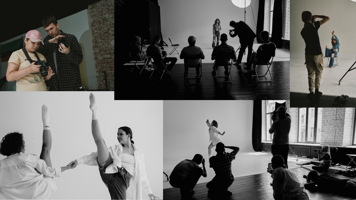 Первые два коллажа — детей с ОВЗ привезли на профессиональную фотостудию, где им вручили настоящие камеры и двое лучших фотографов Самары учили их основам фотографии. Позже пригласили настоящую модель для статичной и танцовщиц для динамичной съёмки. Дети получили уникальные навыки, впервые увидели как происходит настоящая коммерческая съемка, а позже из их работ мы сделали фотовыставку.